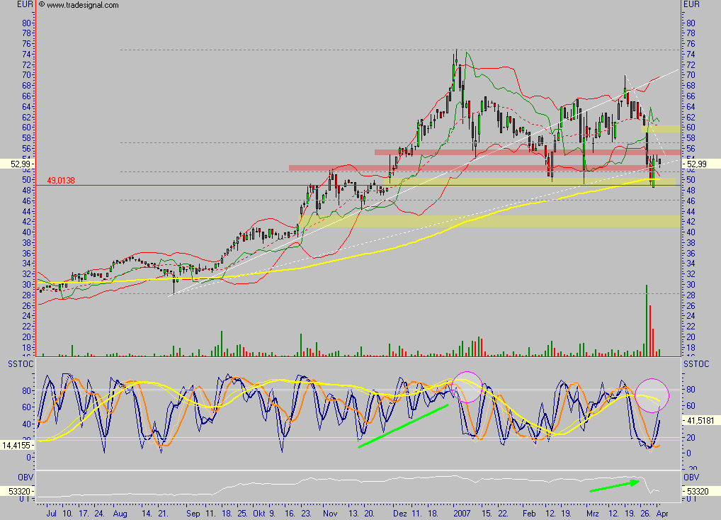 Der BAVARIA Konzern weist weiterhin eine solide Finanzstruktur auf, die sich in einem Bestand an liquiden Mitteln in Höhe von EUR 59,6 Mio. (am 31.12.06: EUR 53,6 Mio.) zeigt. Mit Verbindlichkeiten in Höhe von EUR 2,6 Mio. (am 31.12.06: EUR 1,7 Mio.) ist der Konzern fast frei von Bankverbindlichkeiten. Somit hat sich der Nettokassenbestand des BAVARIA Konzerns von EUR 51,9 Mio. zum 31.12.2006 auf EUR 57,0 Mio. zum 31.03.2007 um EUR 5,1 Mio. verbessert. Diese Entwicklung ist Zeichen der Ertragsstärke des BAVARIA Konzerns. Der Vorstand sieht in der stetigen Vermehrung des Netto-Cashvermögens innerhalb der Gruppe einen wichtigen Indikator für den Unternehmenserfolg und die eingeschlagene Unternehmensstrategie.
