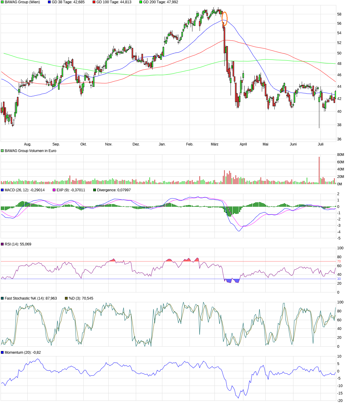 Wer jetzt kauft, bekommt in 9 Monaten mindestens 4,50 Euro Dividende, das sind auf 9 Monate umgerechnet knapp 15 % Zinsen. Wenn die Dividende wieder als Einlagenrückzahlung erfolgt, dann sogar steuerfrei. Bei mir ist Bawag eine Longposition und ich gehe davon aus, dass in den nächsten Jahren eine Steuerfreiheit bei Einhaltung einer Mindesthaltezeit eingeführt wird. Dann wäre die Dividende auch bei einem Verkauf tatsächlich steuerfrei.