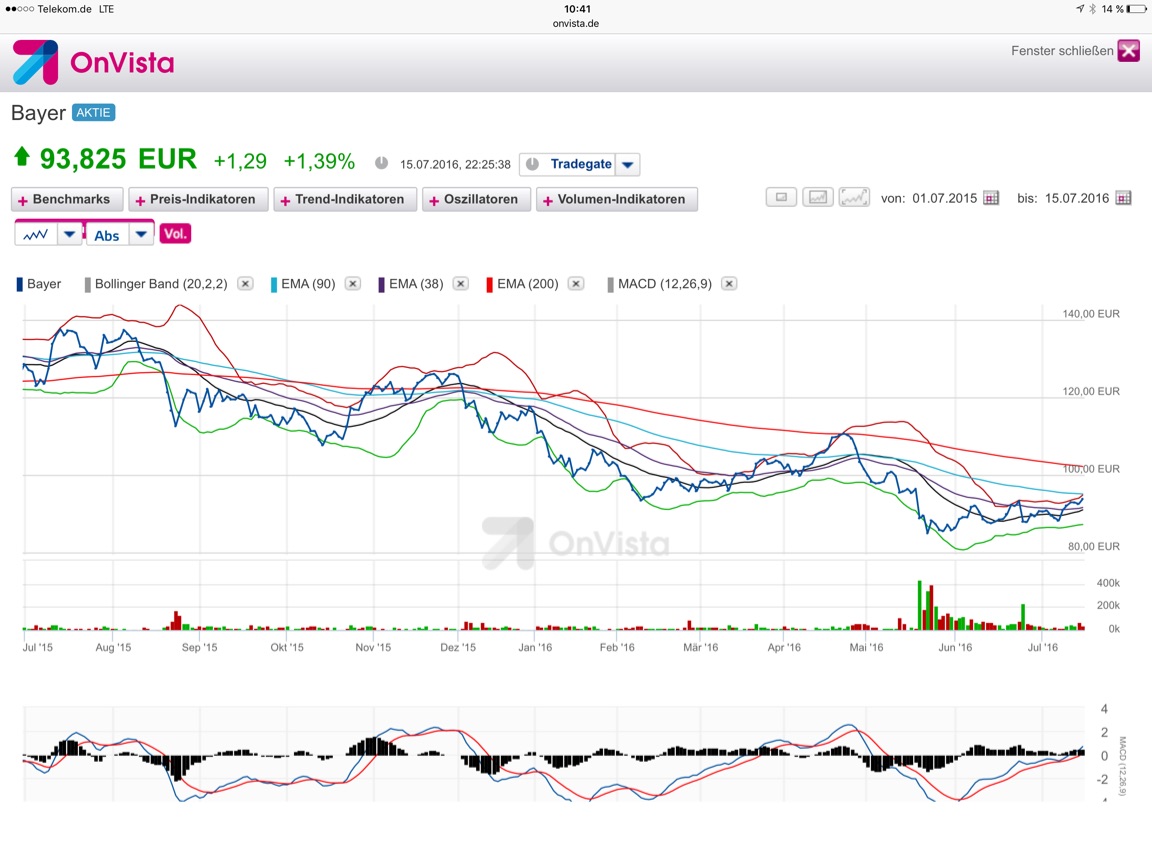 Das Einzige was für den Kurs spricht, ist, dass der Deal zumindest halbwegs eingepreist ist. Es sei denn, Bayer legt immer wieder was oben drauf.