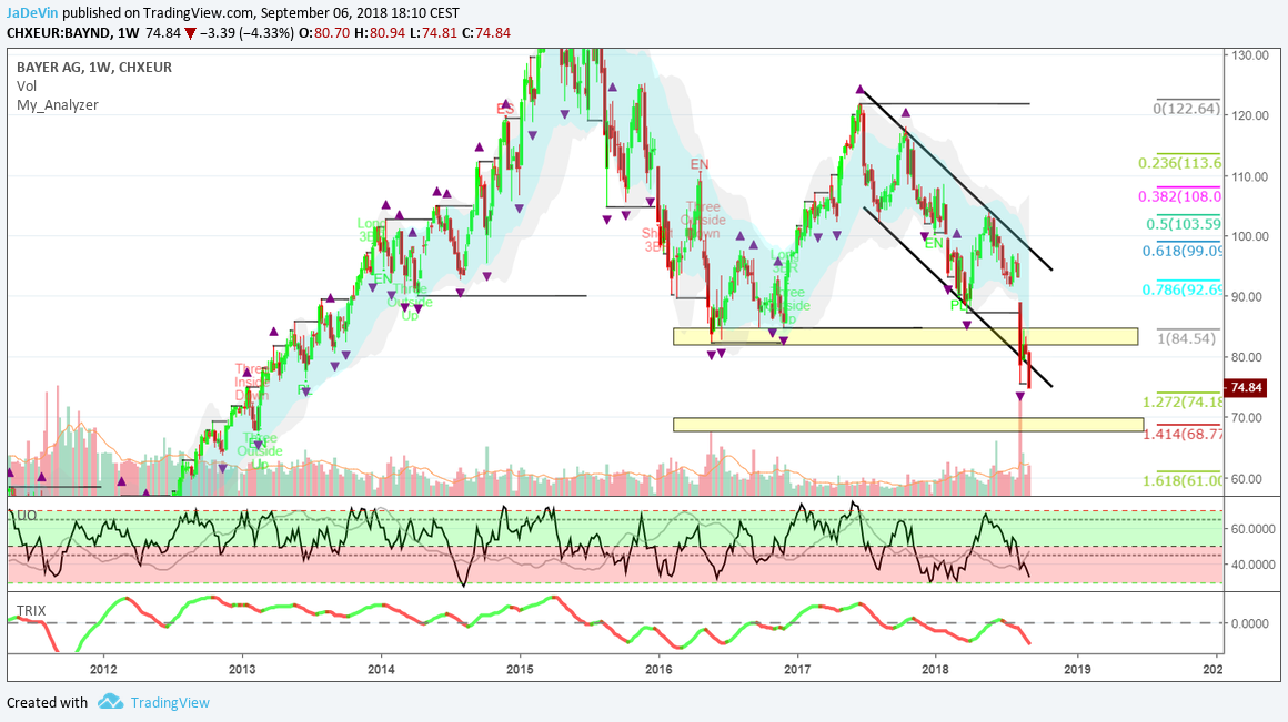 Nutzt die fallende Börse um Zukunftsaktien zu kaufen, nicht Bayer ... das macht erst Sinn, wenn hier wie bei TEVA leider die Umstruktierung ansteht und für das Fehlinvestment Leute entlassen werden. Eventuell ändere ich auch meine Meinung, aber hier ist erstmal viel Luft und Chance nach unten, mit wenig Risiko nach oben. Perfektes Short Target, was dann so richtig nach unten geht, wenn der Gesamtmarkt bröckelt.
