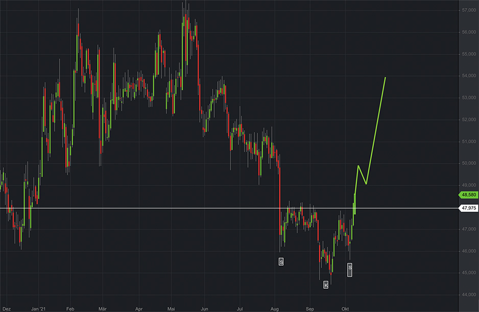 Trendkanal geht momentan in seitwärts Range ca 44.50-48,20 über