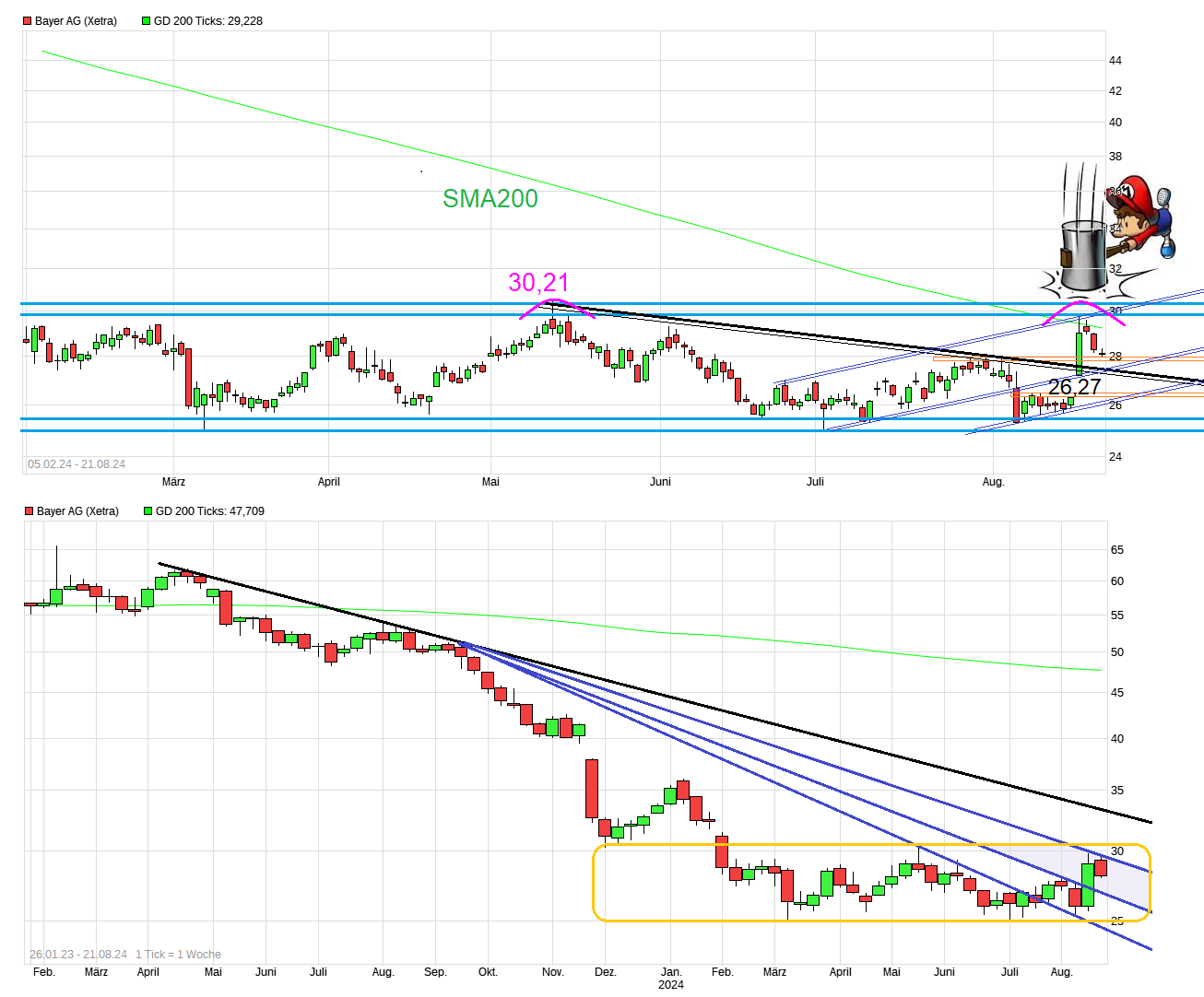 Also schöner wäre gewesen man käme jüngst über die SMA200 und die 30er Marke nachhaltig. Aber man ist ja jüngst erstmal ziemlich heftig hochgesprungen und steht noch immer ein gutes Stück über der Gap-Unterseite (26,27€), die durch das jüngste Urteil entstand. Von daher wirkt die News noch immer positiv. Problem ist halt, daß vielleicht die Chancen nun zwar etwas höher sind die US-Rechtsstreitigkeiten moderater beizulegen, wenn der Supreme Court nun mitspricht, aber es bleibt weiterhin ein Risiko, daß es auch anders kommen kann und es sich zudem auch zeitlich noch ein gutes Stück hinziehen wird bis alle Urteile gefallen sind. Wer also durch den jüngsten Hüpfer schnellen Gewinn gemacht hat, der könnte zu ungeduldig sein hier jetzt zu lange weiter zu warten bis die Dinge geklärt sind. Zudem läßt manchen Trader auch das Scheitern an der 30er Region erstmal wieder Gewinne mitnehmen. Ob es einen Rücklauf gibt bis zum Gap-Close oder nicht ist schwer zu sagen. Kann auch erstmal nicht geschlossen werden. Denn immerhin hat das jüngste Urteil ein positives Gewicht bei der Wahrscheinlichkeit gut aus den UIS-Streitigkeiten zu kommen. Ist die Frage welchen Zeithorizont man jetzt hat. Will man nur ein Stück traden oder ist man bereit länger zu investieren, in der Hoffnung es geht auch wieder aufwärts, wenn die ganzen Urteile in den USA mal abgeschlossen sind.