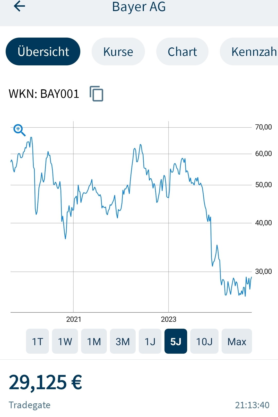 Tacki74: #23973 Bei aller Euphorie, ist aber auch Vorsicht geboten. Der Dax hat in diesem Monat fast 1000 Punkte gemacht und Bayer fast 20%. Das wird vermutlich nicht ewig so weiterlaufen. Spannend wird nur sei wie weit denn eine Bayer zurückfällt. Ich denke und hoffe das wir die 25,- mit der News Lage nicht so schnell wieder sehen….