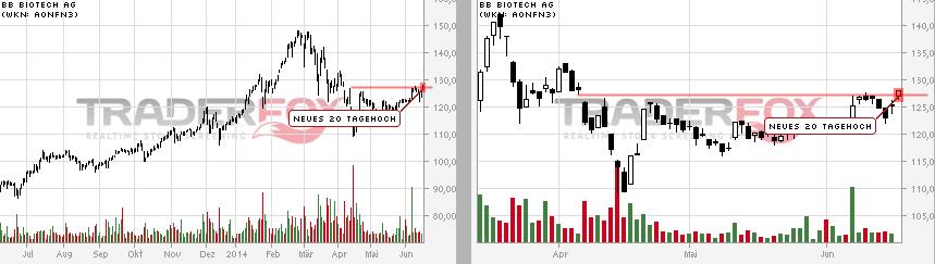 Nicht, dass ich unzufrieden mit dem Teil hier bin aber wenn man die Performance des Nasdaq Biotechnology Index hernimmt, der sich nur noch 3,2% unter seinem Allzeithoch befinden und ihn mit dem BB Biotech Kurs vergleicht - 9,6% unter Allzeithoch.