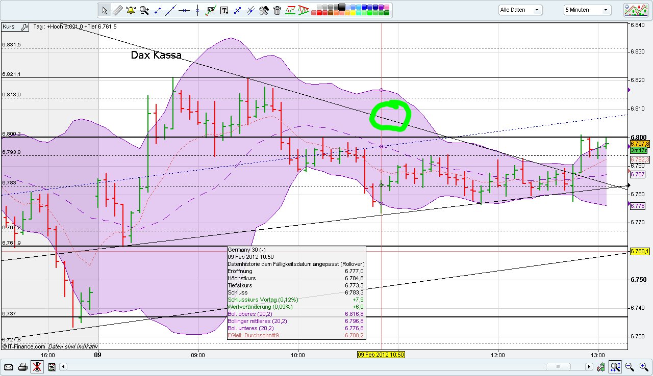 euro ziel obere rote linie wie gestern angenommen fast erreicht nachdem heute nacht die untere linie erneut getestet wurde (2.folgechart) gefahr einer topformation kann nur abgwedent werden durch bruch oben