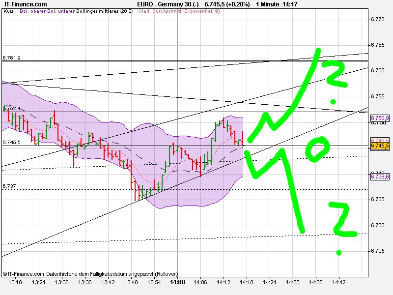 Im 240er konnte mBB nicht überwunden werden. Sollte es sich bei einem Rücklauf an EMA9 ( was ja derzeit auch stattfindet ) nicht stabilisieren, wäre für mich das nächste Ziel ein Gap-close bei 6693 und darüber hinaus 6684.