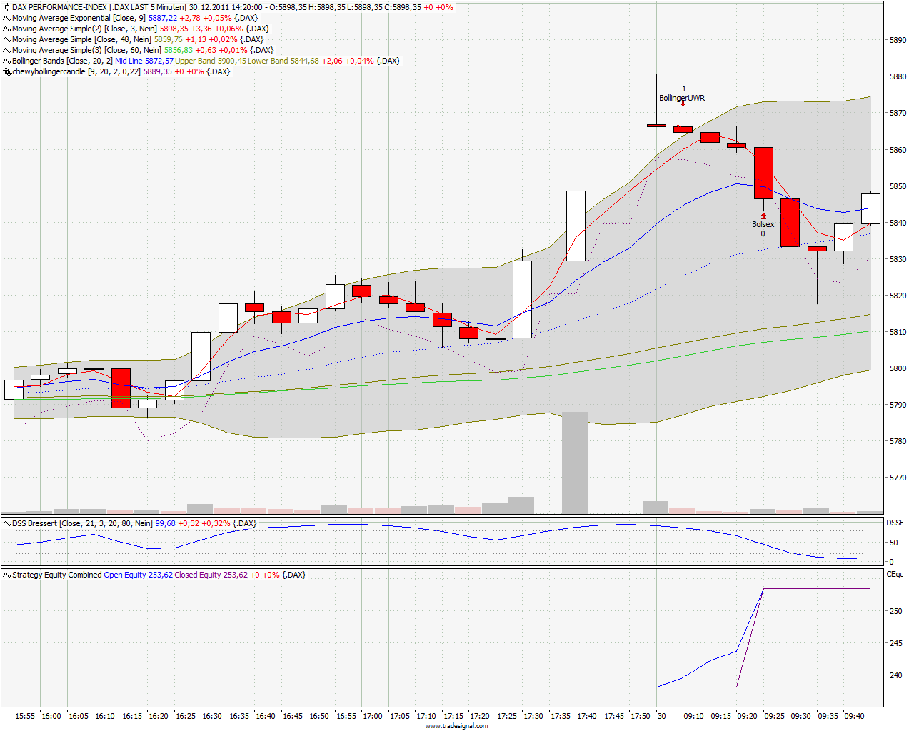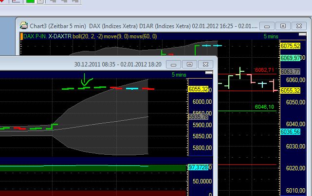 Hier sieht man z.B. auch, dass es am Morgen des 27.12. nicht funktioniert hätte - wobei der deal aber auch schonmal im Plus war und ggf. Nullnummer. Die anderen beiden Beispiele in dem chart zeigen auch, dass die Kerze durchaus nicht draußen starten muss, sondern, dass nur das High übe roberem BB liegen muss. Die Stärkste Dynamik ist natürlich da, wenn ein "wirklich" langer Docht vorliegt...
