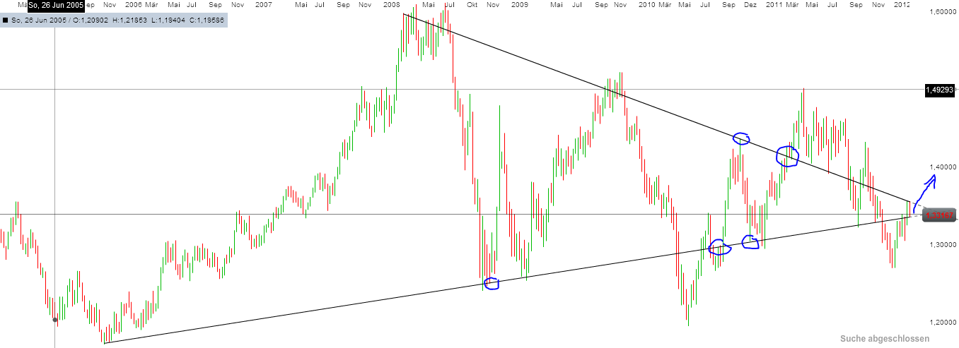 ...habsch mir bei 39 (an einem Freitag im Januar bevor S&P alle abgestuft hat) reingelegt (bei 40 war krasser Widerstand) und ich war am Montag-Mittwoch auf Seminar (also geschäftlich). Und die sind via Gap Up über alle signifikanten Widerstände...