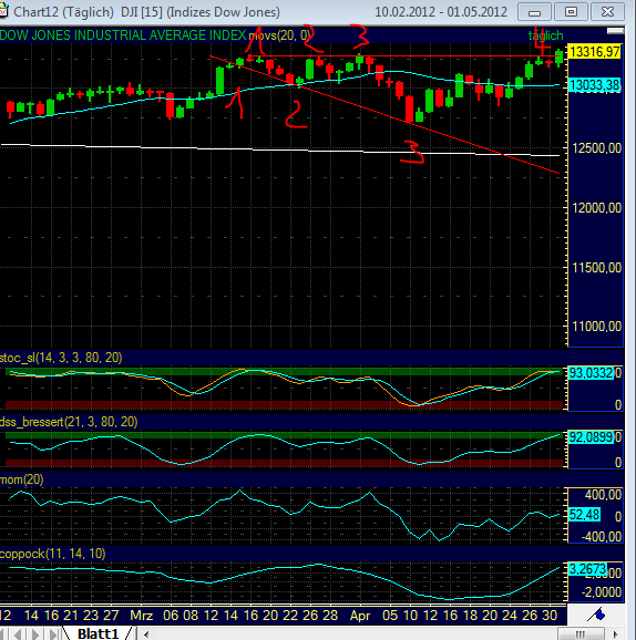 In der letzten Zeit trat im Dax die Figur häufig auf (wen der Name wundert: das ist im Grunde nichts anderes als ein Doppeltop, das bis zum Ausgangspunkt der Bewegung abgearbeitet wird). Und im Grunde war es auch ziemlich zuverlässig zu handeln.