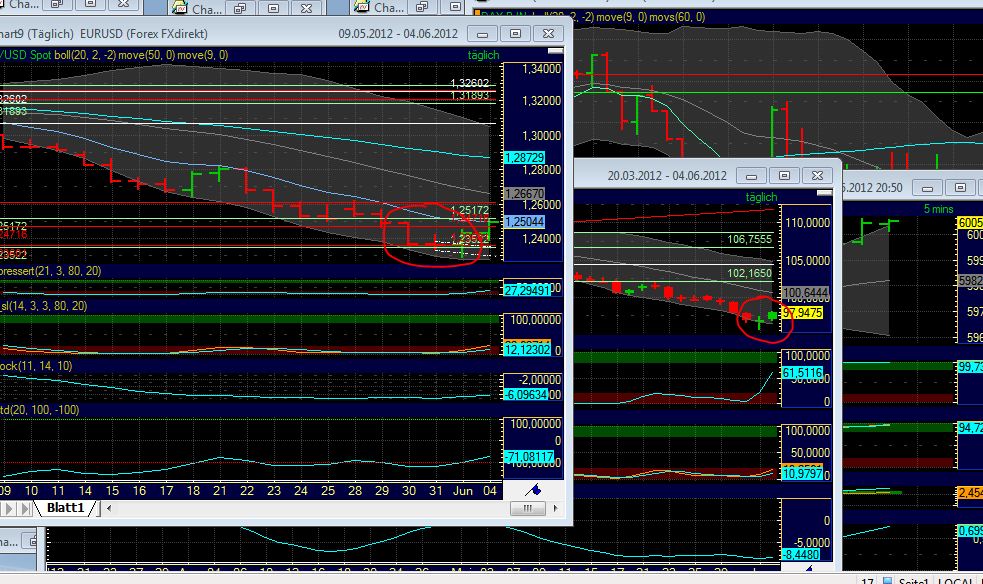 könnnen sie die indikatoren insbesondere im euro über nacht nicht wesentlich entladen wirds morgen früh schwierig ABER noch im longmodus seit rebreak downkanal freitag was ja die annahme war