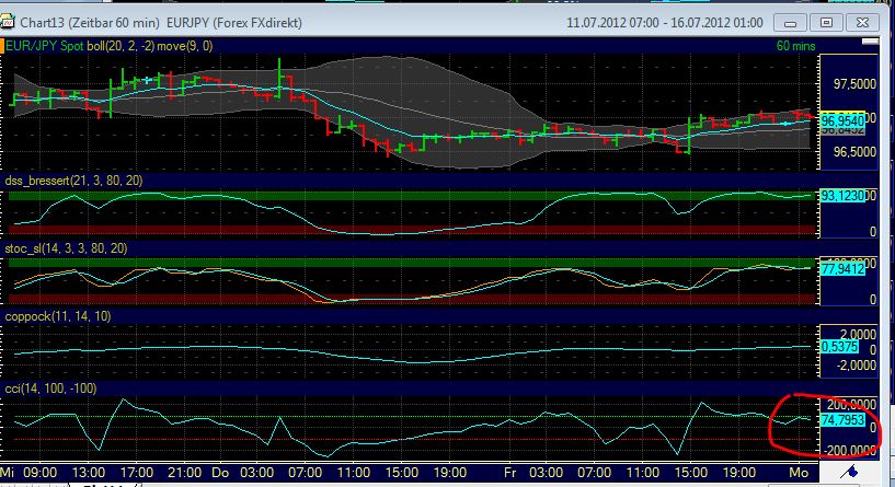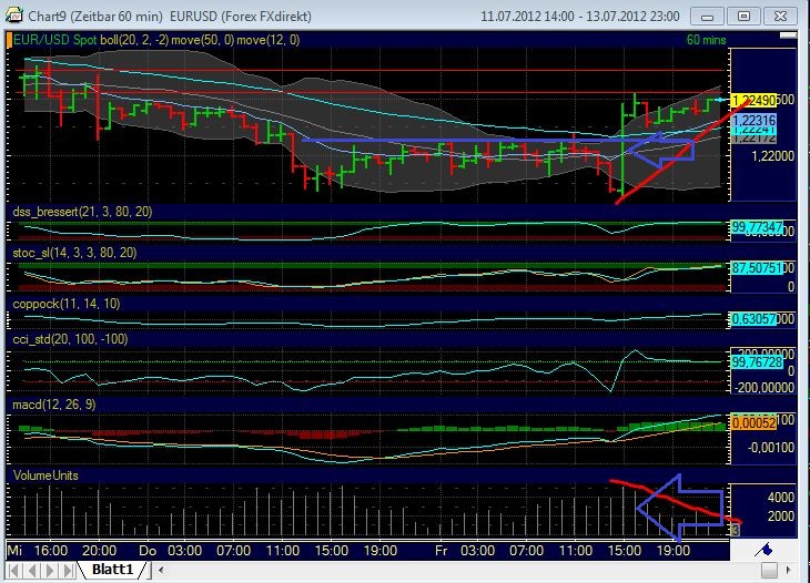 Die Annahme eines Abprall im 1,2150 Bereich hat schon mal funktioniert. Nach Bruch des TH prallte der Euro zuerst am 161RT, aber die hier gezeigte Linie wurde zu Tagesschluss erfolgreich verteidigt.