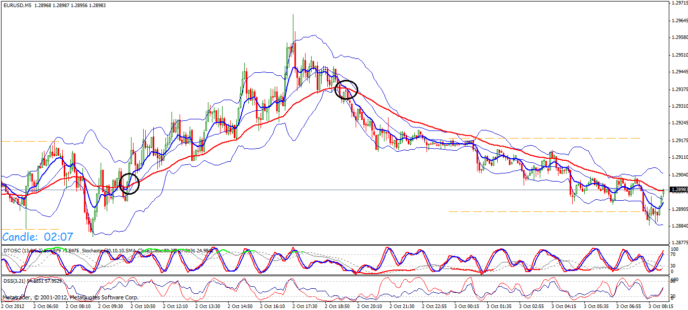 Deutlich wird das im Bild der ersten beiden Stunden im M5 unten. Die beiden senkrechten Striche markieren die Eröffnungsstunden 08:00 Uhr und 10:00 Uhr. Dort passiert so ziemlich allerlei für mich nicht tradebares (BB hätte allerdings richtig Spaß gemacht - aber darum geht's mir gerade bei dieser Strategie nicht)