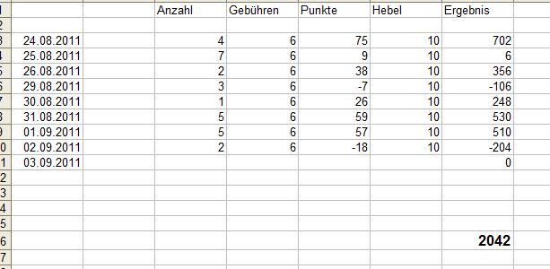 ziel war 200,-/tag ergo 20punkte - durchschnitt bisher 320,- oder 32punkte
