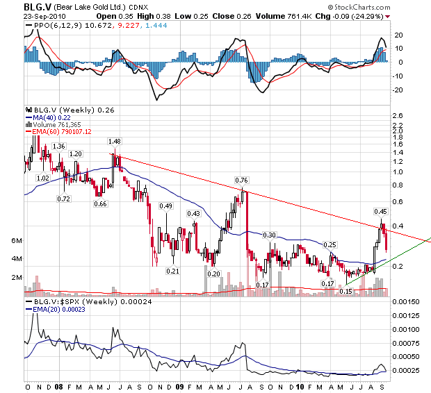 • Bear Lake Gold Ltd (TSX VENTURE: BLG) with a 27% decline