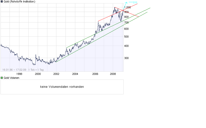 Nun haben wir endlich die Marke von 950 US-$ gestreift...in der nächsten Woche wäre dann wieder eine kleine Verschnaufspause angebracht...bis 925 US-$ ehe wir einen weiteren Anstieg sehen sollten...
