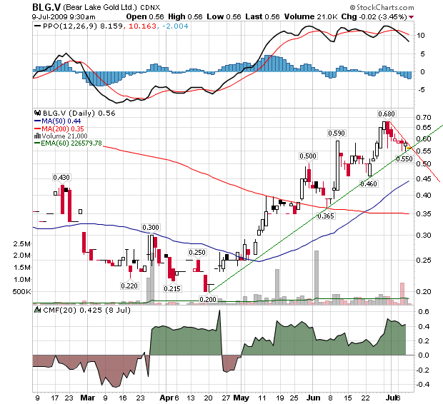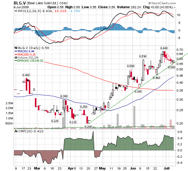 LONGUEUIL, QUEBEC--(Marketwire - July 14, 2009) - Bear Lake Gold Ltd. ("Bear Lake Gold") (TSX VENTURE:BLG) is pleased to report additional results from the infill core drilling program on the Bear Lake gold zone of its 100% owned Larder Lake Project, located in north eastern Ontario.