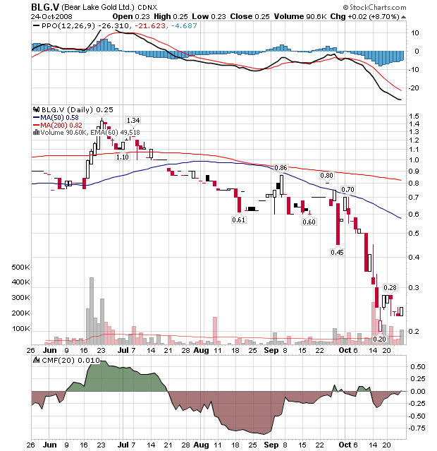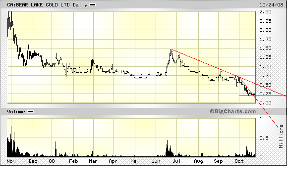 Bear Lake Gold Ltd. (TSX VENTURE:BLG) ("Bear Lake Gold" or the "Company") is pleased to announce that is has completed its previously announced brokered private placement for total gross proceeds of $4,905,980.10. A total of 13,350,000 flow through common shares (the "FT Shares") at $0.30 per FT Shares and 3,003,267 units (the "Units") at $0.30 per Unit (including 503,267 Units sold under the Over-allotment Option granted to the Agents) have been issued. Each Unit issued consists of one common share of Bear Lake Gold and one non transferrable common share purchase warrant, with each warrant exercisable to acquire one common share at $0.40 per share until October 23, 2010.