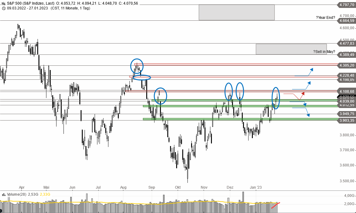 Für die nächste Woche (die geht üblicherweise von Montag bis Freitag) wäre mal der 4050 Bereich näher anzuschauen für einen Einstieg (Dax 15000, Nasi 12000, Dow 33700/33800).