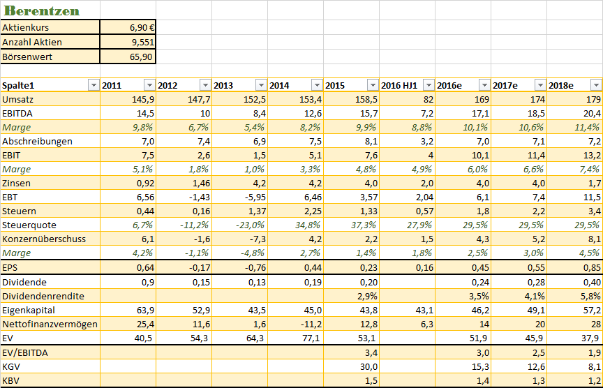 der Frankfurter Wertpapierbörse notierte Berentzen-Gruppe