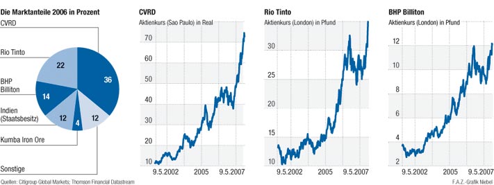 Another mining company would likely need to join the bid to provide the equity, the analysts said, suggesting Xstrata Plc. and Cia. Vale do Rio Doce, the world's largest producer of iron ore, could be interested.