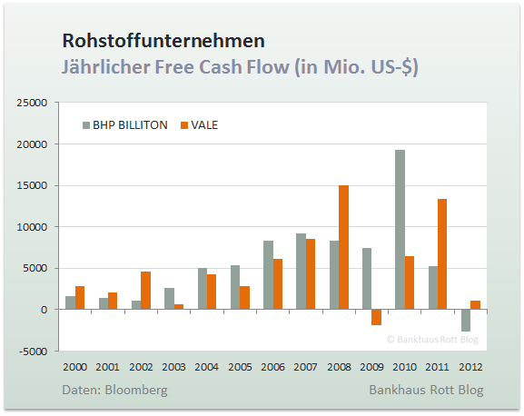 Steigende Kosten bei sinkendender Nachfrage. Dieser Satz bringt das Kernproblem der Minenkonzerne auf den Punkt. Viele Großprojekte, die Milliarden verschlungen haben, können die in sie gesteckten Erwartungen nicht erfüllen. Gleiches gilt für zahlreiche Übernahmen, die wie in den meisten Branchen in guten Zeiten mehr auf Leichtsinn als auf fundierten Analysen beruhen. Abschreibungen im zweistelligen Milliardenbereich waren bei vielen Firmen die Folge und weitere Verluste werden nicht lange auf sich warten lassen.