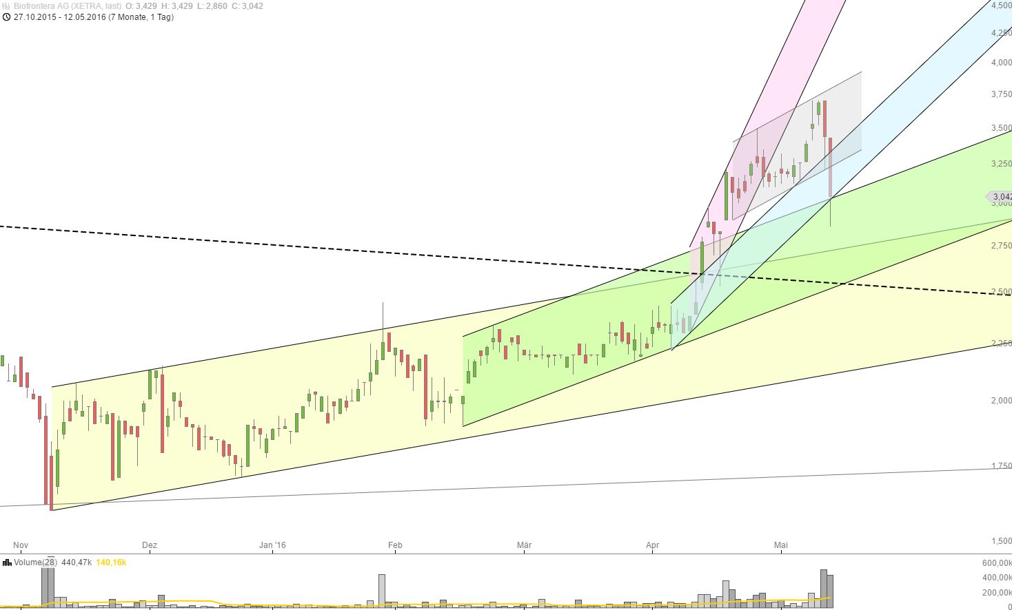 Die Aktie von Biofrontera ist bereits im Vorfeld des Zulassungsentscheids deutlich angestiegen. Leser des am 19. April 2016 erschienenen Aktienreports „Die neue Epigenomics“ (www.aktienreports.de) konnten Biofrontera in aller Ruhe bei 2,73 Euro einsammeln. Noch besser hatten es die Leser des Biotech-Reports (www.biotechreport.de), welche zusätzlich zu den regelmäßigen Nachbehandlungen den Biofrontera-Aktienreport kostenfrei erhielten. Der Lohn der Lektüre des Biotech-Reports und des Aktienreports ist ein Kursgewinn von zeitweise fast 50 Prozent innerhalb von gut drei Wochen.