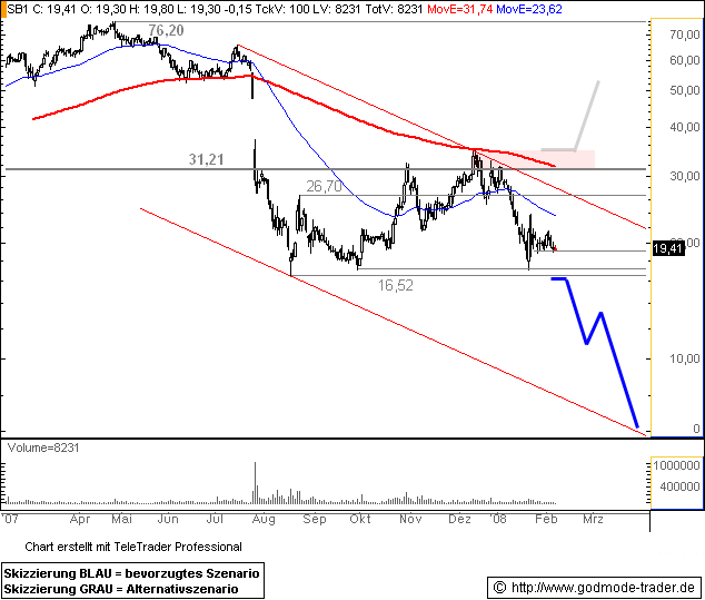 Schmack enttäuscht weiterhin, da sie mal wieder viel versprochen haben und dies nicht erfüllten. Statt der 180 Mio. Umsatz, wurde das dann auf 140-150 gesenkt und letztendlich waren es 132Mio. für 2007. Und es waren mal wieder Verluste von 9,6 Mio. Euro. Hätten die nicht so viel Gutes versprochen, sähe es gar nicht so negativ aus, da selbst im Krisenjahr 2007 ein Wachstum von 47% verzeichnet wurde. Aktueller Auftragsbestand: 116 Mio. Euro. Das es erst ab der zweiten Jahreshälfte 2008 besser werden sollte, habe ich hier schon mal vor einem Monat vermutet. Wenn die sagen, daß die Fixkosten gesenkt werden sollen, heißt wohl daß deren enormes Personal doch nur aufgeblasen war. Schließlich hat EnviTec mit halbem Personalaufwand mehr Umsatz generiert und die machen trotz Krise Gewinne. Falls jedoch bei Schmack wesentlich mehr in der Entwicklung und Forschung gearbeitet haben, können die sich gerade bei Großprojekten einen Entwicklungsvorsprung raus gearbeitet haben. Doch daran hege ich meine Zweifel. Doch das Vertrauen und die Gewinne werden zurückkommen und dann wird auch der Aktienkurs dieser Boombranche alte Stände erreichen und überschreiten. Doch wohl erst 2009. Bin gespannt, wann in der Biogasbranche das erste Unternehmen mit Zahlen und Fakten mal wieder positiv überrascht. Ist ja schon was her, seit 9 Monaten gibt es nur negative Überraschungen aus dem Segment, wobei das Umfeld immer positiver wird.