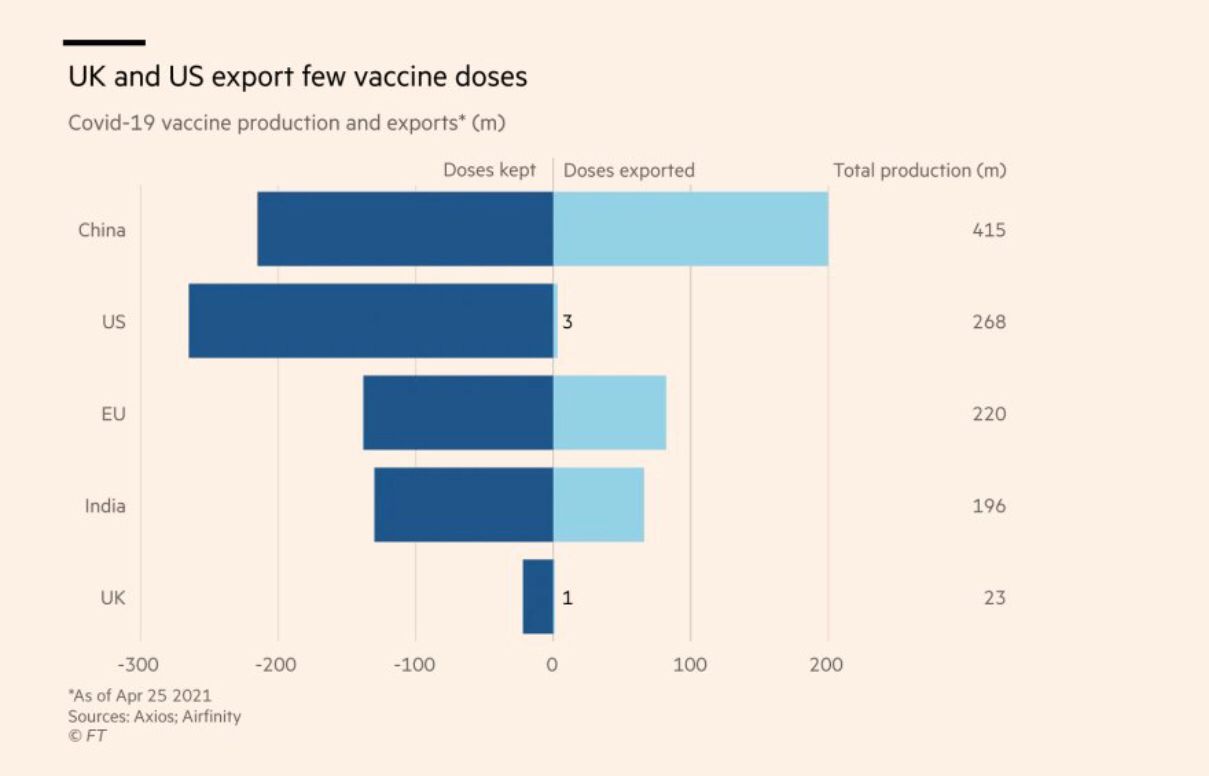 jetzt pro Woche. Und da wir wissen, das Biontech in Marburg zirka 60 Mio Dosen monatlich produzieren kann sagt mir das, das Biontech jetzt auch 30 Mio Dosen aus Marburg in alle Welt liefert. Und die Dosen aus Fertigung Mainz und Idar-Oberstein kommen noch Top dazu.