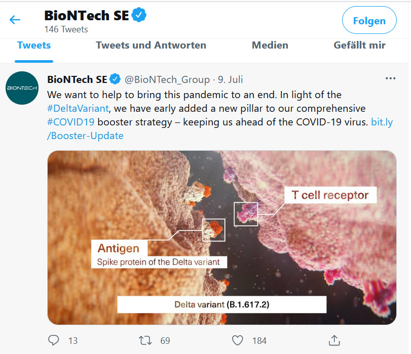 Das Pharmaunternehmen kündigte außerdem an, im August mit der Erprobung einer speziell zur Bekämpfung der Delta-Variante programmierten Auffrischungsimpfung zu beginnen.