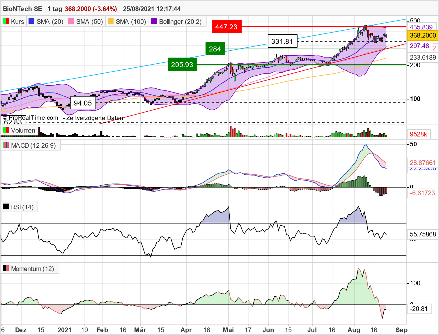 der Kurs von BNTX bewegt sich in einem Seitwärtskanal