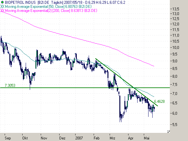 Wenn es nicht in naher Zukunft einen rasant steigenden Ölpreis gibt, könnte der Kurs von Biopetrol ebenso schnell in den Keller rasen.
