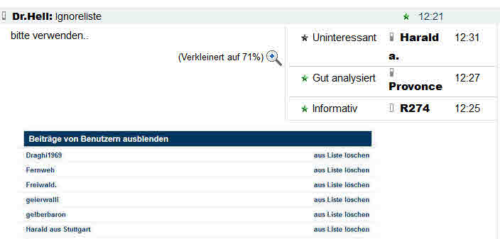 Allerdings sollte die Sachlichkeit beibehalten und wenn möglich auf diese dauernde Kurskommentierung und Einzeilerposts verzichten werden. Es nervt...