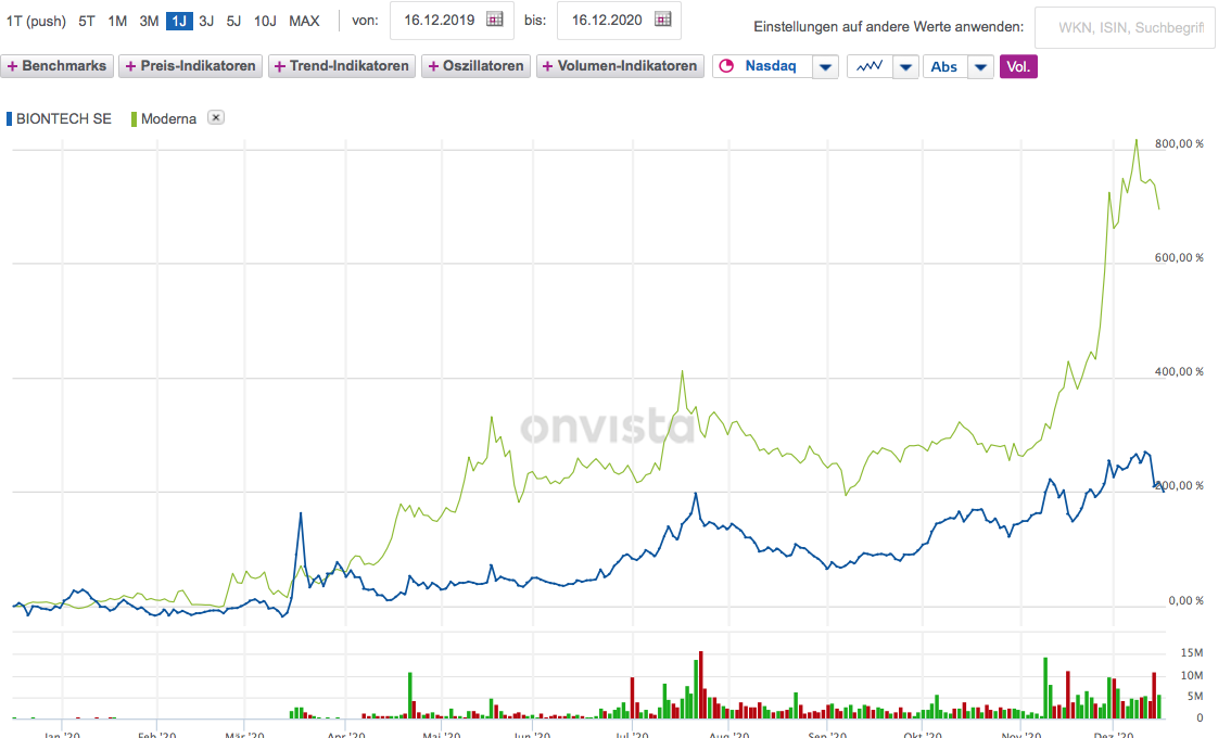 Fazit: Solche Berichte sind leider nichts wert, weil man dummerweise nie rauskriegen wird, ob die erwähnten Probanden sich auch wirklich an a l l e Anweisungen des Impfteams gehalten haben bzw. dies überhaupt konnten (weiß nicht, ob man je nach Belieben in den USA Urlaub nehmen kann, wenn man will, und wenn man natürlich annimmt, dass diese Erzählungen auch authentisch sind). Das genau ist aber, was man wissen müsste, wenn man eine solche Info bekommt. Solche Infos kriegt man aber über die Medien nur selten. Nur dem Markt ist das natürlich egal, der preist ein. Kann sein, dass man jetzt das ganze monatelang aussitzen muss, bis durch genügend andere Erfahrungserlebnisse offenbar wird, dass man bei dieser neuen Impfung bei korrekter Anwendung aller Verhaltensregeln danach eben nicht durch eine Fieber-, Kotz-, und Durchfallfolterkammer durchmuss. Solange muss man ein weiteres Verlustrisiko aushalten oder, wenn man Trader-Profi ist, kann man versuchen, die Wellenbewegungen im Kurs, die es immer gibt, auch weiterhin auszunutzen.