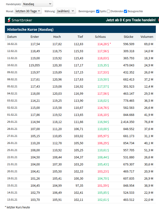 Dennoch zeigt der Trend aktuell leicht nach unten. Im Tradegate-Handel liegen aktuelle Kurse am Mittwochmorgen leicht im Plus, zuletzt wurde ein Kurs von 94,60 Euro (+0,33 Prozent) notiert. Auf die charttechnische Ausgangslage hat dies natürlich wenig Einfluss.