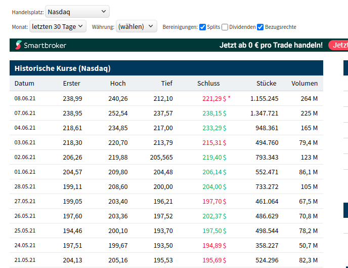 Daten zuletzt aktualisiert Jun 07, 2021 08:00 PM ET.