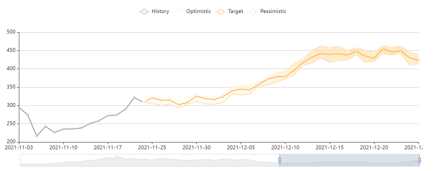 wegen der geänderten Fundamentaldaten (4. Welle, Booster, ...) orientiere ich mich mittelfristig wieder an Meilensteinen: nächster Step 350 $, die einmonatige Oszillation vor den letzten Tiefs, dann auf eine Verdoppelung auf Basis 250 $