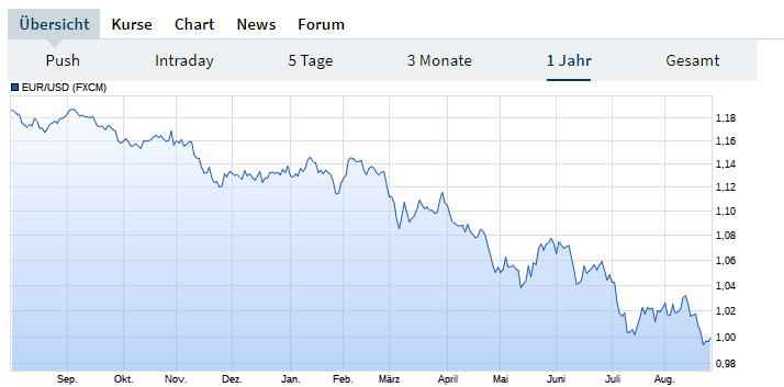 ) schon auf dem Schirm, dass der Euro in einem Jahr fast 20 % an Wert verliert???