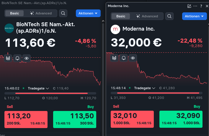 "Alle diese Verträge haben eines gemeinsam: Alle Unternehmen haben ihre jeweiligen PD-1/VEGF-Medikamente von chinesischen Biotech-Unternehmen einlizenziert. Summit erwarb 2022 die Exklusivlizenz für Ivonescimab von Akeso, während Instil Bio im August einen Vertrag mit ImmuneOnco Biopharmaceuticals für SYN-2510 unterzeichnete. Während BioNTech im vergangenen Jahr mit Biotheus ein Abkommen über BNT327 unterzeichnete, bot BNTX am Dienstag an, seinen Partner für 800 Millionen Dollar zu übernehmen." Übersetzt mit DeepL.com (kostenlose Version)