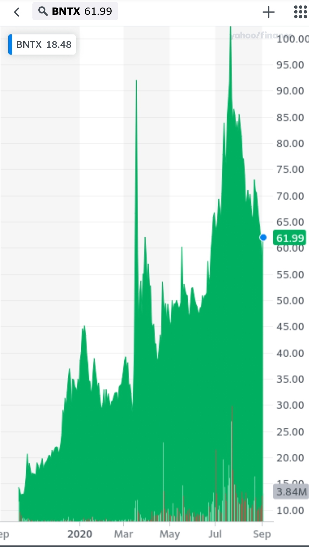 Meine Befürchtung ist aber, dass Trump den Impfstoff von Moderna bevorzugen könnte. Ich habe irgendwo gelesen, dass Trump bei der FDA nachgefragt hat, ob auch ein Impfstoff die Schnellzulassung erhalten könnte, der die Phase III noch nicht abgeschlossen hat, das müsste doch Moderna sein, denn die liegen zeitlich mit Biontech fast gleich auf. Außerdem würde es zu Trumps America First Politik passen, dass ein rein amerikanisches Unternehmen zum Zuge käme, pünktlich zu den Wahlen am 03.11.. Ebenso würde es die hohen Kurse von Moderna erklären.
