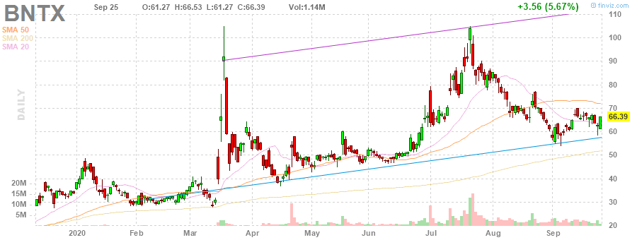 Das bisherige Rennen: Analysten haben gemischte Ansichten darüber, welcher Impfstoff der Spitzenreiter ist. Analysten der SVB Leerink sagten Investoren in einer Notiz vom 18. September, dass die Versuchsprotokolle im Vergleich zu Moderna BioNTech und Pfizer zu bevorzugen scheinen. J.P. Morgan sagte am 22. September, dass die Phase-1-Daten, die bisher von AstraZeneca, BioNTech/Pfizer und Moderna zur Verfügung gestellt wurden, keine "wirkliche Hervorhebung im Hinblick auf das Sicherheitsprofil" darstellten. Dennoch neigt mRNA-1273 dazu, etwas höhere Raten von Fieber, Schüttelfrost und Kopfschmerzen zu haben als die Konkurrenz".