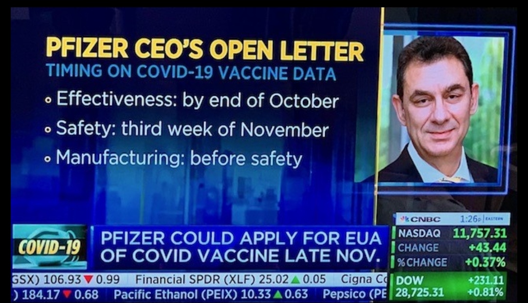 Daneben könnten auch ein paar Wörtchen zu den bisherigen Kosten der Impfstoffentwicklung fallen. Geredet wird von 2 Mrd. USD, das ist selbst bei gut 40 Mrd. USD Jahresumsatz kein ganz kleiner Brocken, der sichtbare Spuren im Quartalsergebnis hinterlassen sollte. Wenn wir richtig Glück haben, führen sie sogar die geleisteten Meilensteinzahlungen an BioNTech gesondert zu den Phase 3-Kosten auf - damit bekämen wir eine noch bessere Idee, was für BioNTechs Quartalszahlen zu erwarten ist, und wie viel im Erfolgsfall aus den Einnahmen für BNT162 an Pfizer für die hälftige Beteiligung an den Phase 3-Kosten zurück zu vergüten wäre.