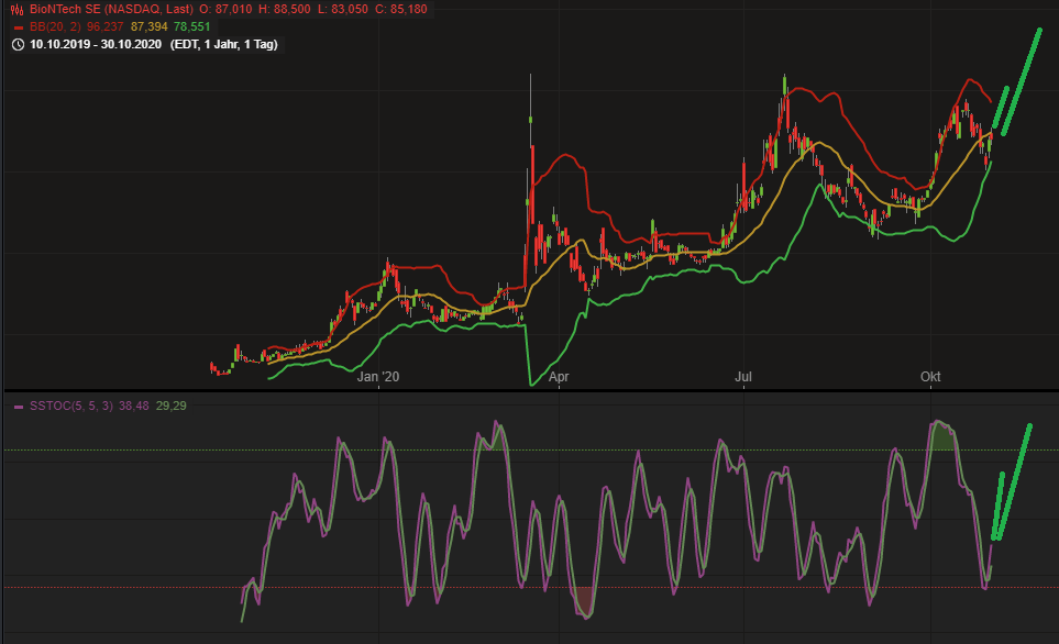 Ein Erfolg bei der Entwicklung eines Covid-19-Impfstoffes würde Biontech finanziell stärker und so wahrscheinlich der Entwicklung vieler weiterer derzeit noch in klinischen Studien befindlicher Impfstoffe zum Durchbruch verhelfen. Die Biontech-Aktie könnte seinem bereits an der Börse vorweggenommen Status eines Mrd.-Euro-Konzerns so relativ schnell gerecht werden.