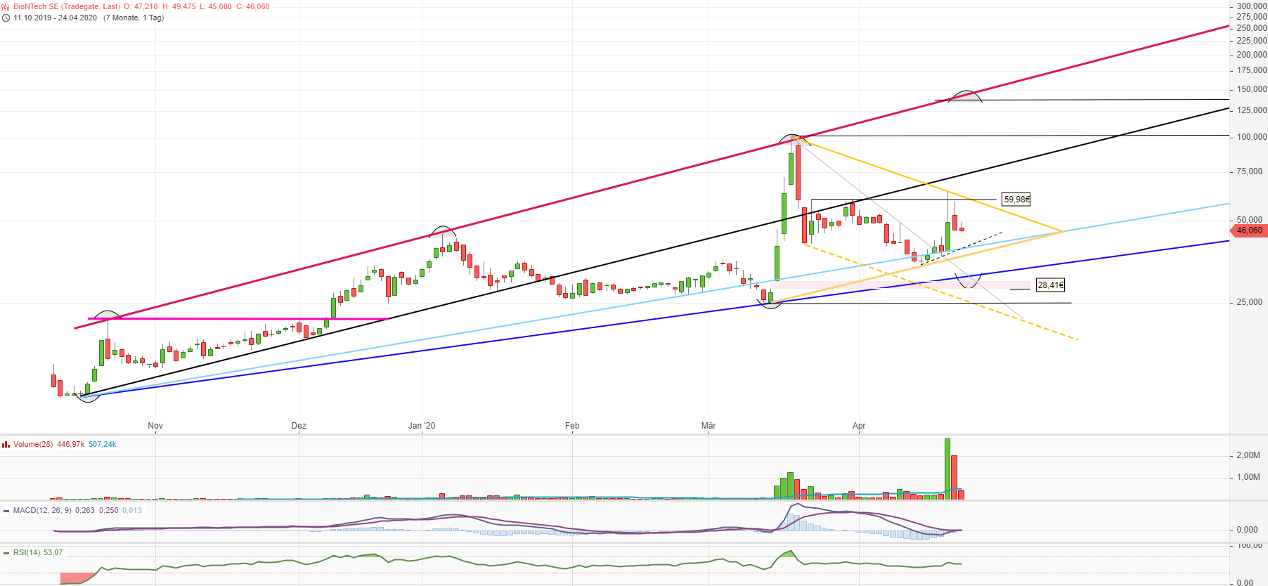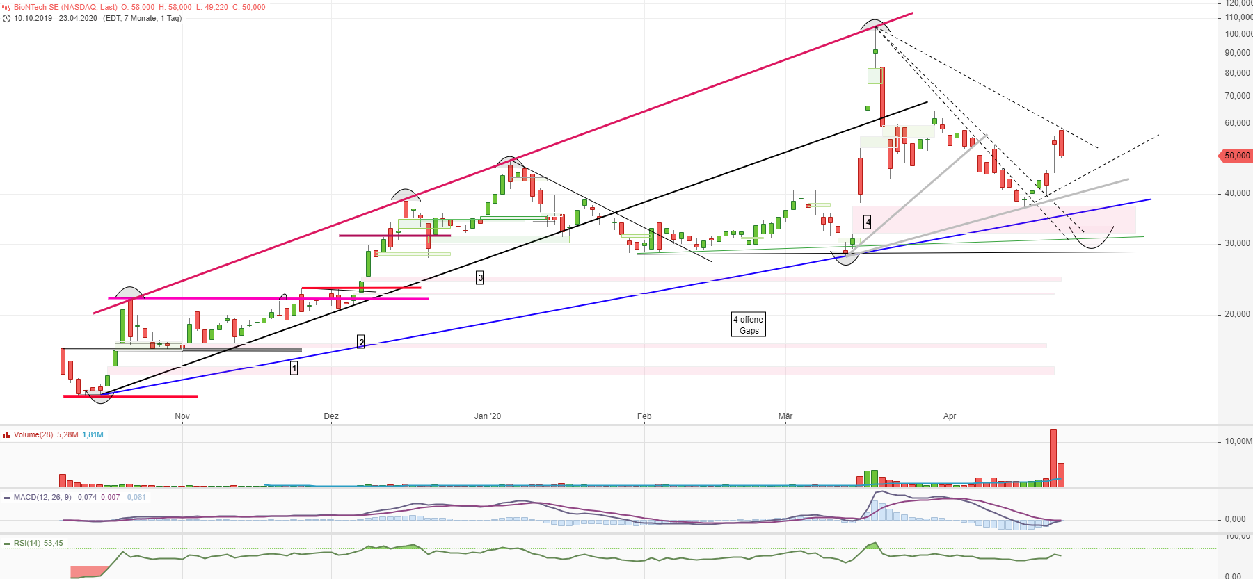 Alle Experten, und die sind sicher vertraut mit den aktuellsten Technologien, rechnen frühstens Ende des Jahres mit einer Möglichkeit. Wenn ich mich richtig erinnere, forscht man seit 20 Jahren mit mRNA. Und jetzt auf einmal soll alles in zwei Wochen auf den Markt kommen? Ich lass mich ja gerne überraschen, aber ich beschäftige mich schon ein paar Jahre mit Biotechs. Wir werden es Anfang Juni wissen. Aber Studien dauern ihre Zeit.
