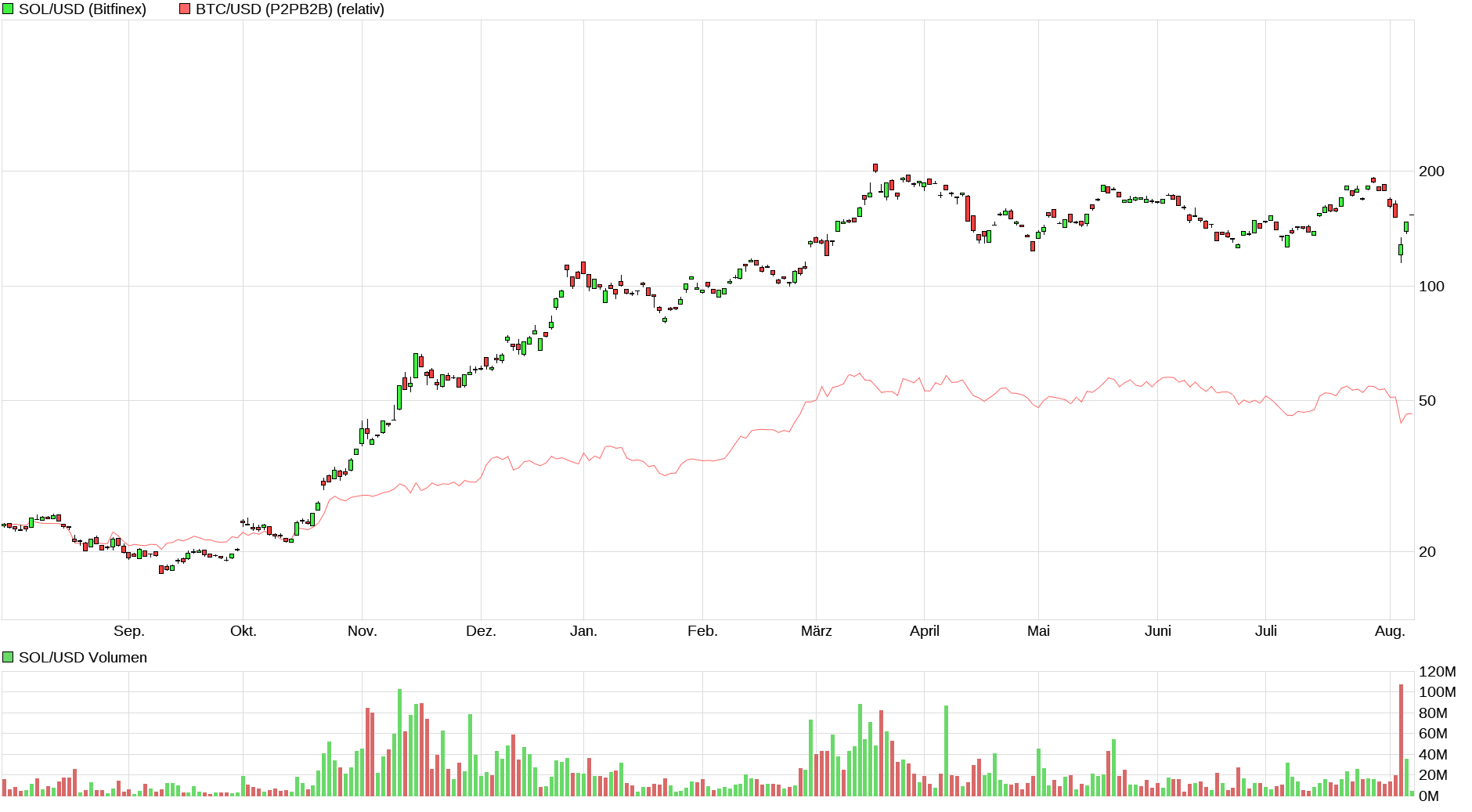 An den Finanzmärkten macht sich ein Hauch von Panik breit. Nicht nur die globalen Aktienmärkte brechen ein, sondern auch Kryptowährungen werden am Montag von einem Anfall von Risikoaversion an den globalen Märkten zurückgeworfen. Bitcoin fiel zeitweise um mehr als 12% in Richtung der Marke von 50.000 USD und der zweitplatzierte Ether erlebte den stärksten Rückgang seit 2021. Der gesamte Krypto-Sektor steht unter Druck, nachdem die Sorge vor einer Rezession in den USA zugenommen hat und sich die Märkte Fragen, ob die Fed bereits hinter der Kurve liegt. Auch die geopolitischen Spannungen und der Ausverkauf der US-Tech-Werte drücken auf die Stimmung an den Märkten."