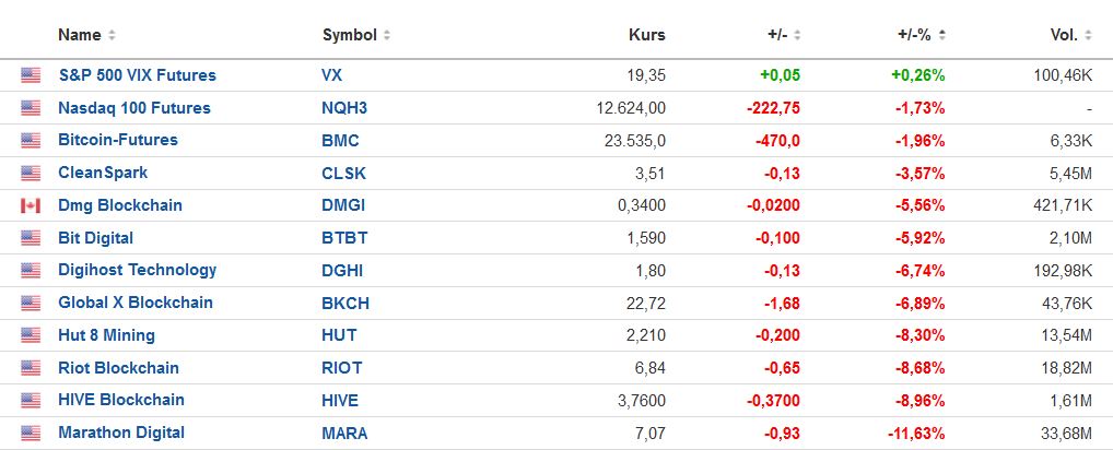 Mit dem Anstieg der Volatilität und dem schwachen Nasdaq wurden besonders die liquiden Miner verkauft.