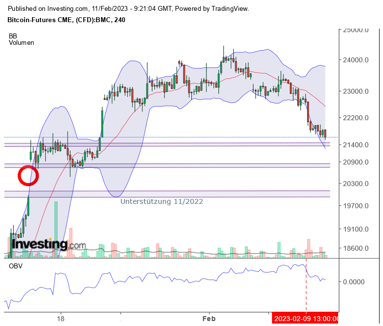 Der Anstieg war etwas zu stark. Außerhalb des Bollingerbandes wird verkauft.