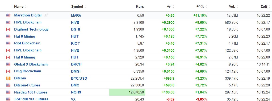 Trotz der Schwäche bei Silvergate haben sich Bitcoin und einige Miner heute gut entwickelt.