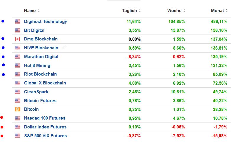 Gestern sind die Miner deutlich gestiegen, heute ist eine Gegenbewegung wahrscheinlich.