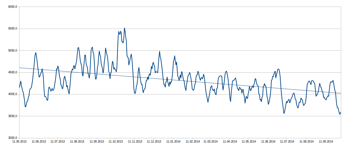 Im folgenden Chart benutze ich für die Anzahl der genutzten Adressen (Adoption) den 7 Tages Durchschnitt. Alle Daten sind von blockchain.info: