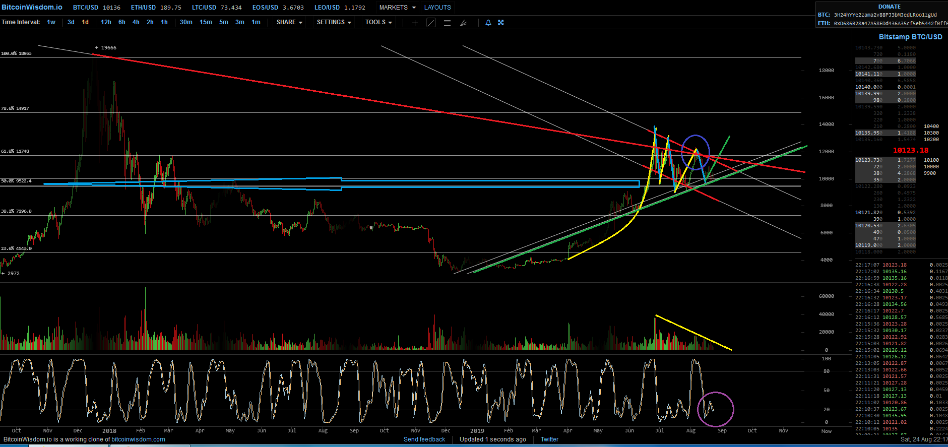 Die bullish Flag ist voll intakt nach dem Anstieg bis ca. 14000 USD
